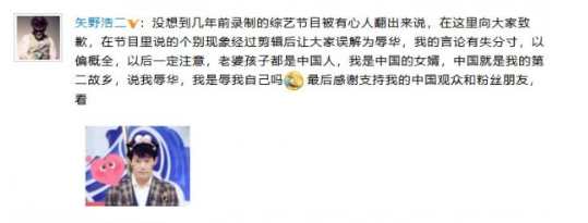 矢野浩二不止一次在节目和社交平台中表示过自己对中国的热爱和肯定。