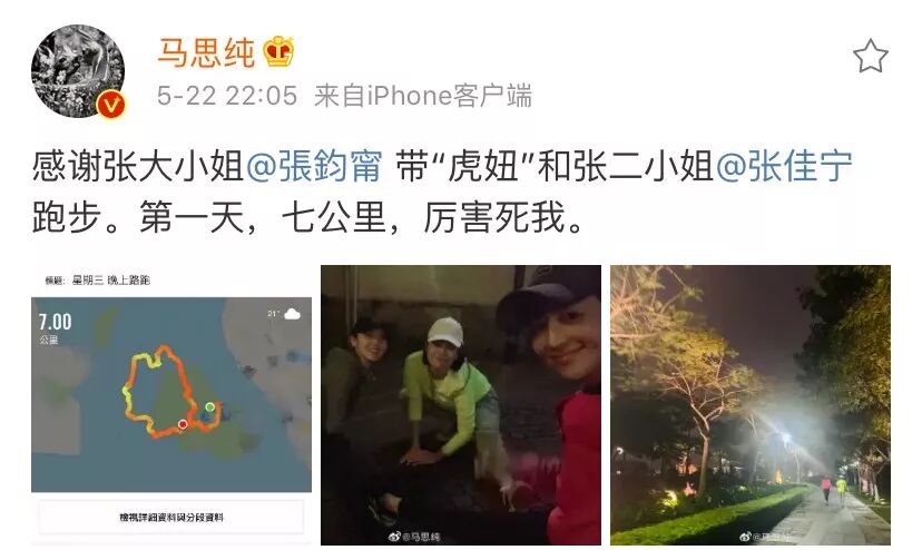 马思纯也在微博爆料过,被张钧甯抓去跑步。