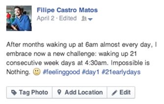 有一个葡萄牙销售小哥,想要改变自己的生活,于是决定先从一个小事儿做起:每天4点半起床,坚持21天。