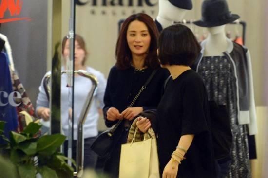 与好友逛街,边走边聊,蒋勤勤在路人镜头下还是那么的女神。