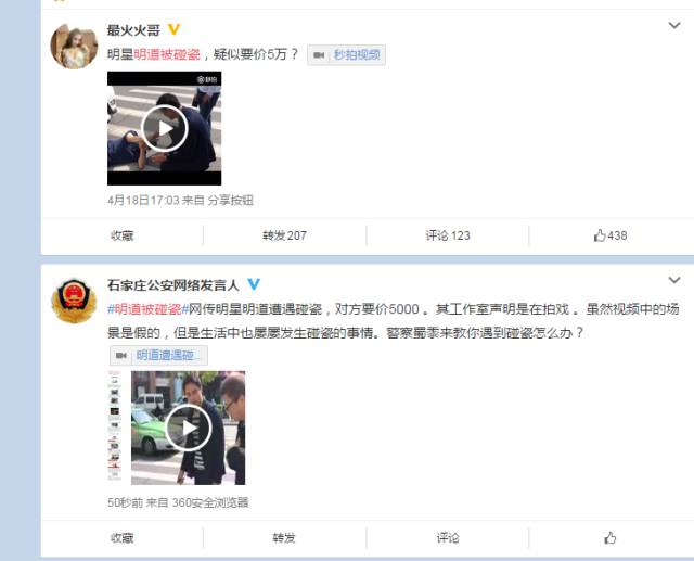 还有人说:丢人啊,碰瓷碰到明星这里,你也是骄傲,警察会马上找你合影留念的