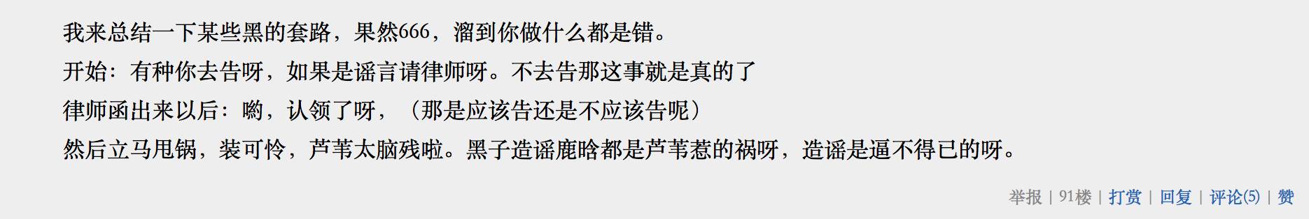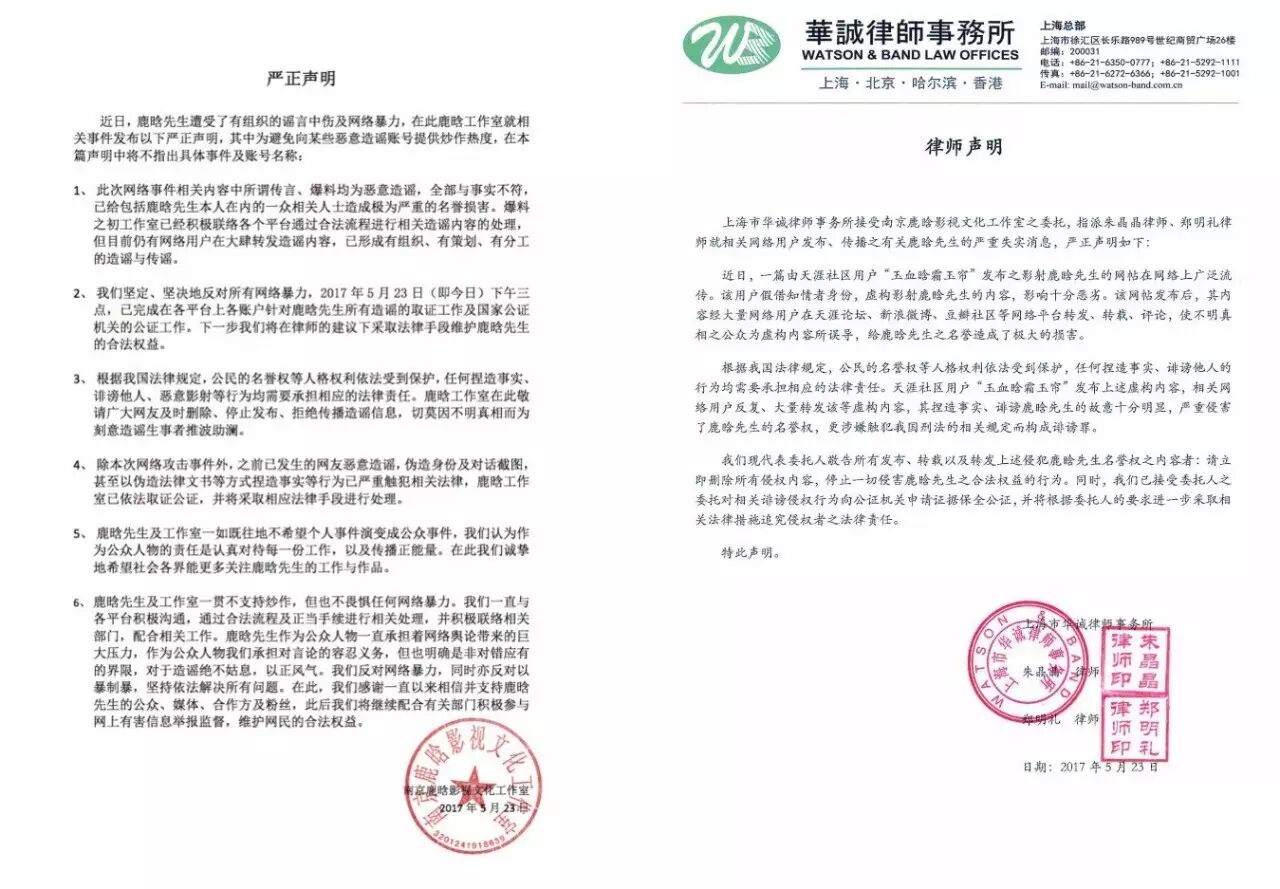 之后就有了cp粉、唯粉回踩,各营销号齐发通告黑鹿晗,甚至天涯、八组、兔区、豆瓣等平台一夜之间鹿晗各种没实证的黑料频出。因而,在23日下午鹿晗工作室不得已发出了严正说明,采取法律途径,抵制网络暴力。