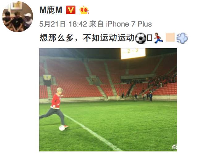 鹿晗在当天下午发博“想那么多,不如运动运动”。