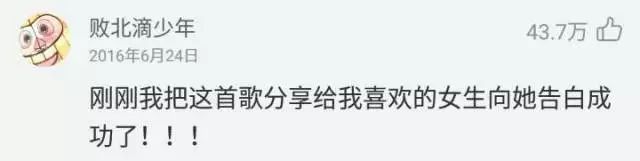 刚刚我把这首歌分享给我喜欢的女生向她告白成功了!!!这就是所谓的利益结果驱动吧。就像“老乡,参加红军可以分到土地”,我刚参加了,就分到一亩三分地了。