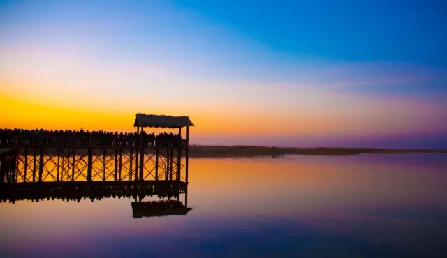早起前往【居延海】拍摄日出,(日出大概在7点到7点半左右,今天辛苦大家起个早床,为了观赏日出,请大家一定严格遵守导游约定的时间出发)这里是《水经注》里提到的弱水流沙之地,也是土尔扈特族发展的摇篮。这里现在是一片长满芦苇的海子,日出时分场面相当壮阔宏大。当东方的太阳越出水面,霞光四射,水天瞬间都染成通红,满湖面的鸥鸟此起彼落,翱翔翻飞,海子周边的芦苇荡随风飘动,好一副日出盛景,这一刻快门声一定会淹没鸥鸟的叫声。之后集合回达来呼布镇,回到额镇稍事休息后,队员们自行游玩在【额济纳胡杨林】里创作,从二道桥到八道桥,这里有走不到尽头的胡杨林、红柳海。 瑟瑟秋风中的胡杨林已变成一片金黄,额济纳胡杨林有38万亩,是仅存的三大胡杨林区之一,金秋时节漫步辉煌的金秋胡杨林,捕捉千姿百态的胡杨美景。你也可以找寻导游所说的一树三叶的神奇景象:“幼树叶如针似柳眉、壮龄树叶酷似白桦、老年树叶椭圆。”额济纳的日落在7点半左右,大家可以在5点半左右乘景交车前往巴丹吉林沙漠北缘——八道桥观赏沙漠看夕阳。进入八道桥景区后 团友们则可以尽情享受沙漠带来的独特乐趣,滑沙、骑骆驼、沙漠越野、摆pose等等,嗨起来吧。在日落时分坐在沙丘上静静欣赏大漠的日落光影……日落完自行回酒店。
