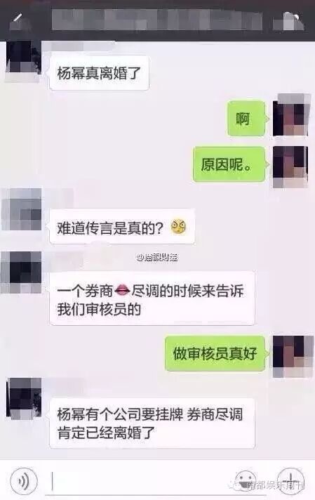 据悉,在一个金融界群里,有人声称:杨幂公司要挂牌上市,券商在做尽职调查时发现了她是离婚的状态。