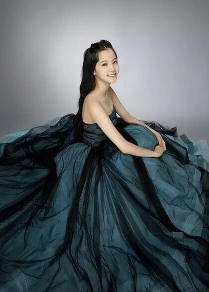 15岁的她虽然还未成年,但是她却将这件深沉否认礼服穿出了小女孩的可爱甜美,一点也不显成熟,但是显示不了她率真的性格.
