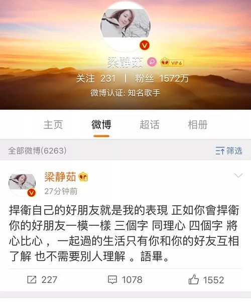 最后,那些打着国籍旗号站队的人,不要带节奏,不是三人粉丝,单纯就此事件来说,这件事情有错么?没有,仅仅只是一个为了捍卫自己好朋友的人做了该做的事。话说回来梁静茹真的很酷啊。
