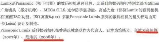 不吭不响的接下原本属于张韶涵的松下相机代言。
