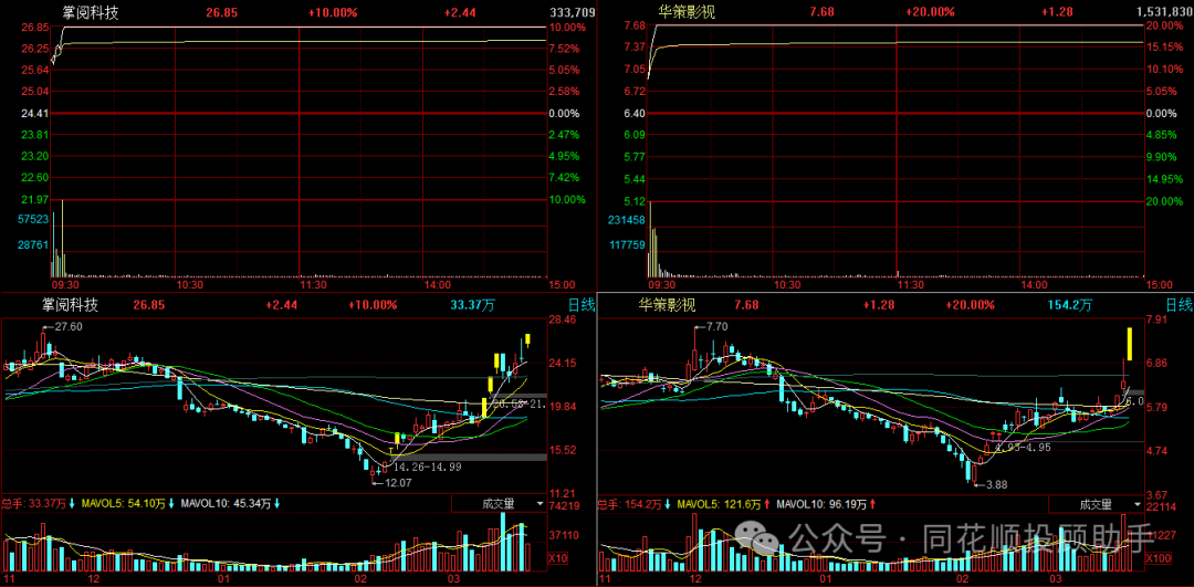 比如Kimi大模型昨天晚上充分发酵,由于掌阅科技和华策影视近期都表示已经接入月之暗面,集合竞价均是大幅高开,开盘之后几分钟就直线拉板,眼球效应杠杠的,也给AI应用今天的炒作打了个样。
