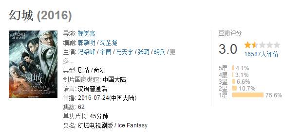港真,《幻城》播出之前,真没想到它会扑成这样,本以为是一部大制作来着,就算评价不好,收视也应该会不错的。