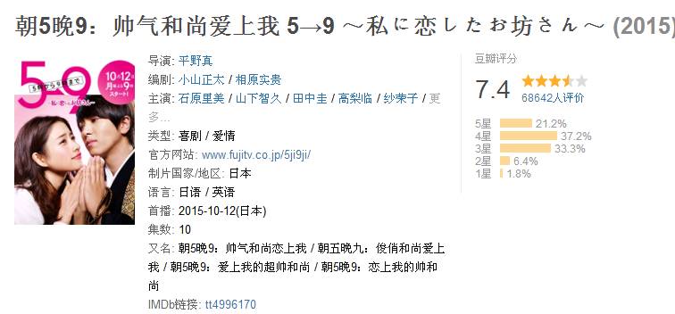《朝5晚9》【2015】【完结】改编自同名少女漫画,由山下智久、石原里美主演 一天天长大 日韩男星 2017-10-24 17:57:55 281 创作不易,用心坚持,欢迎请BaGua喝几杯爱心咖啡!打赏并支持本文 打赏并删除本文 日本富士电视台于2015年秋季播出的电视剧。改编自同名少女漫画,由山下智久、石原里美主演。 樱庭润子是崇尚西方文化、生活模式的27岁英文老师,星川高领是帅气之外还拥有学历高、身高高、收入高的「三高条件」的和尚。生活方式完全无法达成共识的两个人,将会引发怎样的浪漫爱情? 创作不易,用心坚持,欢迎请BaGua喝几杯爱心咖啡!打赏并支持本文 打赏并删除本文 感谢您的支持鼓励,我会继续努力的!文章地址:用户邮箱:打赏金额:USDT 请输入数字点击”去打赏“,即可进行打赏支持本文章哦 山下智久 About the Author 一天天长大 功能介绍:原 电影小哆啦 Related Posts 【最新完结】【韩剧】 张娜拉、崔振赫 等主演的爱情剧 2019-02-22 17:50:22 【经典】尼古拉斯·凯奇高分犯罪片,豆瓣评分8.1 2018-08-24 17:43:30 张若昀、马思纯、李现、刘敏涛、姜超 等主演的最新爱情喜剧 2018-05-25 00:07:49 周渝民、薛凯琪、郑中基 等主演的爱情喜剧 2018-05-14 23:06:53 宫崎骏动画系列合集 2018-03-21 19:18:52 发表评论