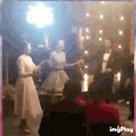 婚礼晚宴环节,宋慧乔一身白衣,和宋仲基一一向众宾客敬酒,远道而去的章子怡也被邀上台。两位新人牵起她的手尬舞了一番,场面很是友爱。看到老公尬舞的呆萌模样,宋慧乔乐不可支,开心地像个孩子。