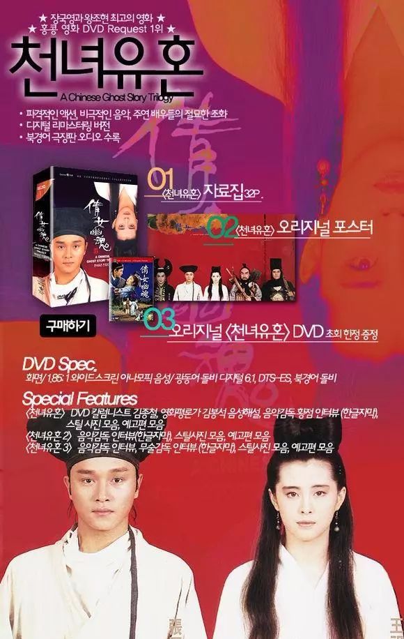 徐克监制、程小东导演的灵异电影经典作,采取全新的特技和美术手法来包装传统的聊斋故事,使本片呈现出与往昔鬼电影全然不同的感觉,包括张国荣、王祖贤、午马、刘兆铭等人的造型和演出与及黄沾撰写的几首电影插曲。故事由《聊斋志异》中的《聂小倩》改编而成,在香港上映后大获好评,并在亚洲影坛掀起了跟拍鬼怪片的狂热风潮。此片亦扬威海外,为热爱香港电影的东南亚和欧美人士推崇备至的电影之一。美国多家电影学院曾将《倩女幽魂》当做教科书研究中国电影特效。王祖贤亦凭借“聂小倩”一角风靡亚洲,红极一时。