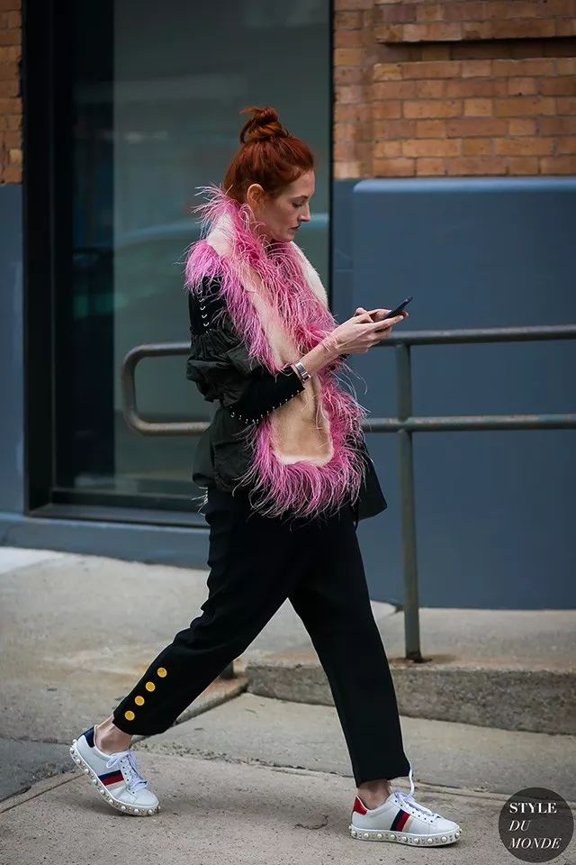 虽说叫小白鞋,但去年的一水儿白色看多了难免略显无聊。今年更流行在鞋子侧面或后跟拼色的款,或者加上一些珍珠、花边的点缀,百搭又充满亮点。