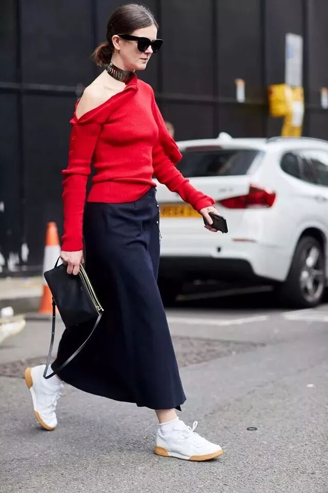 这双小白鞋鞋底又厚又宽,看起来非常笨重,它能搭配春天轻薄的衣服吗?