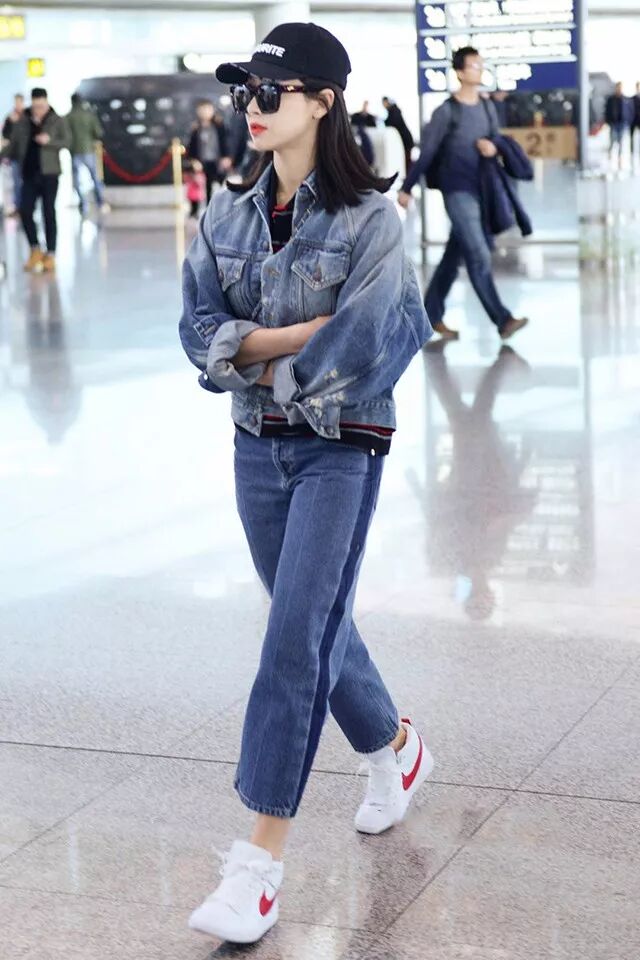 厚底配boyfriend风的直筒牛仔裤让你瞬间回潮80年代。