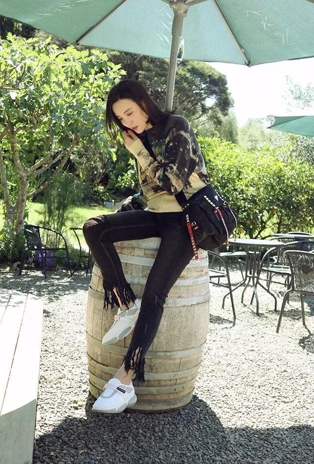何穗、宋茜这种印着大Logo的拼色小白鞋也是今年必入的款。
