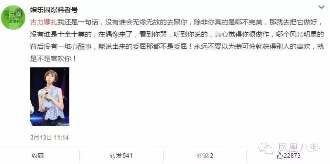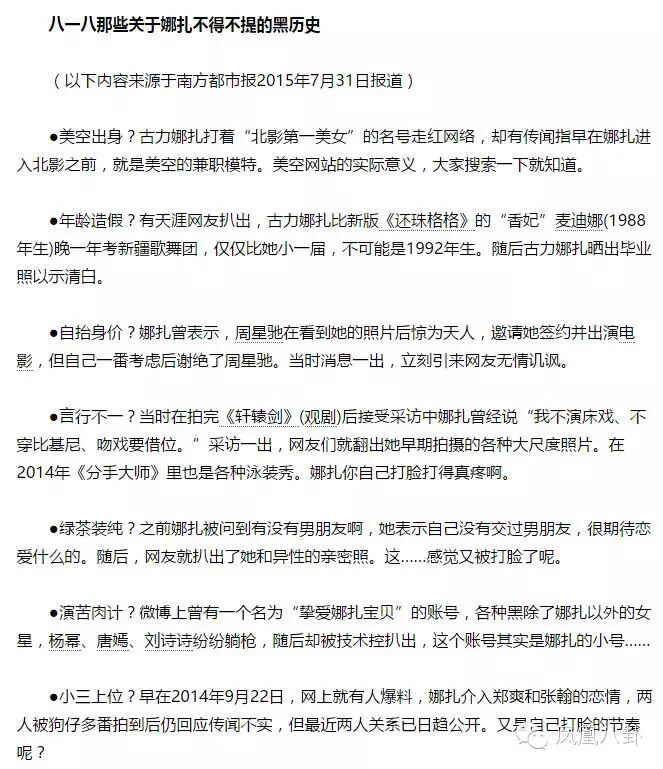 微博上曾有一个名为“挚爱娜扎宝贝”的账号,各种黑除了娜扎以外的女星,杨幂、唐嫣、刘诗诗纷纷躺枪,随后却被技术控扒出,这个账号其实是娜扎的小号……