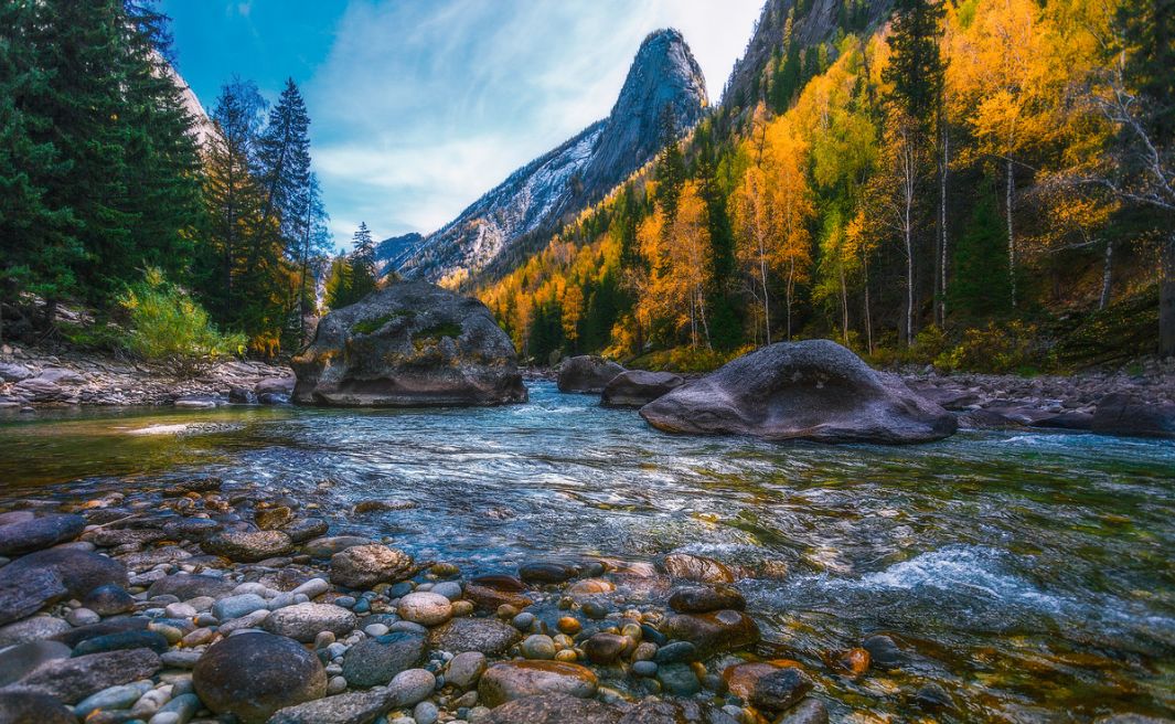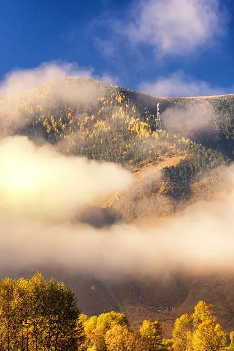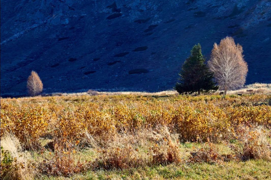 被叫做"绿色的丛林"、"蓝色的河湾"的可可托海,还是没有忍住秋天的诱惑,悄悄变了颜色。