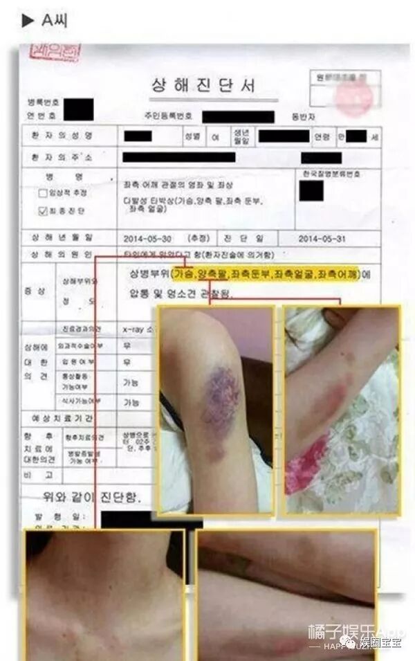 故事来源于他的前女友崔某,崔某控告金贤重对其使用暴力致受伤,还晒出了证据: