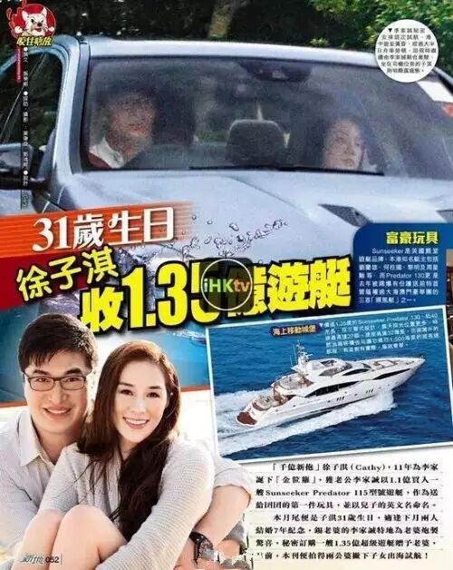2013年的生日,李家诚则买下了一只价值1.35亿的游艇给老婆庆生。
