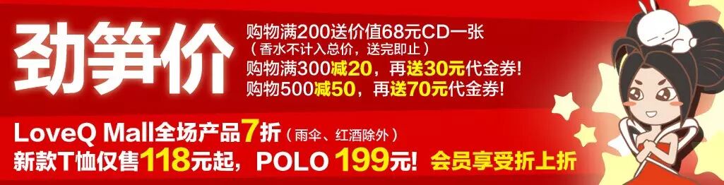 LoveQ Mall劲笋价,全场产品7折(雨伞、红酒除外);