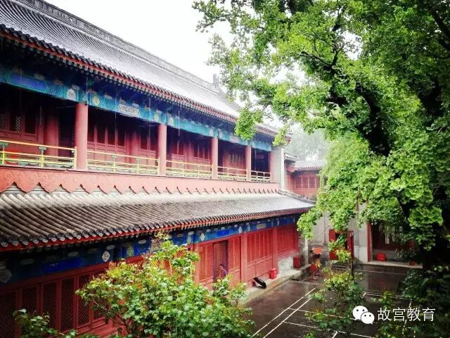 柏林寺始建于元至正七年(1347)始建,明正统十二年(1447)重建。规模最大的一次修缮是在康熙五十二年(1713),为庆祝康熙60寿辰,由胤禛主持重修;乾隆二十三年(1758),又一次拨巨款进行重修。寺坐北朝南,主要建筑全在一条南北中轴线上。山门殿前矗立着一座高大的砖砌影壁,雕刻有精美图案。大雄宝殿是全寺的主体建筑,檐下正中悬挂有巨额横匾,上书"万古柏林",是康熙60寿辰时的亲笔题书。殿内有明代塑造的三世佛和7尊木制漆金佛像。东配殿内存有康熙四十六年(1707)铸造的交龙纽大铜钟,高2.6米,钟身遍刻经文。寺内有藏经阁,自成院落,东西两侧建有翼楼,也是故宫学校的所在地。
