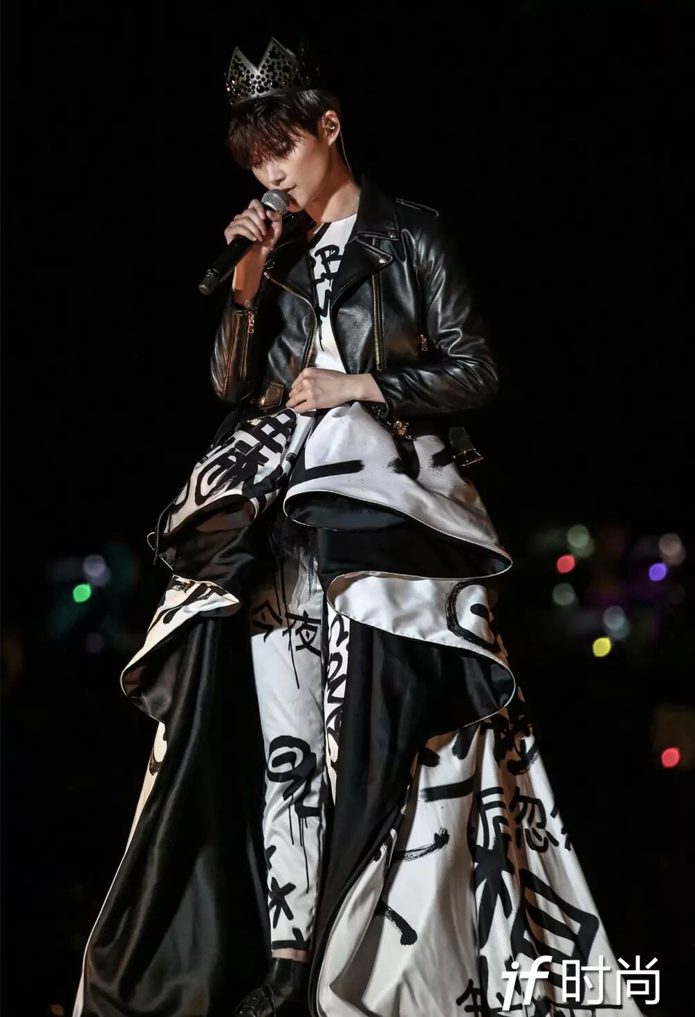 ▲纪梵希的创意总监Riccardo Tisci继2013年演唱会之后,再次为春春打造战袍,不对称的设计和金色的铆钉,效果华丽、张力十足。