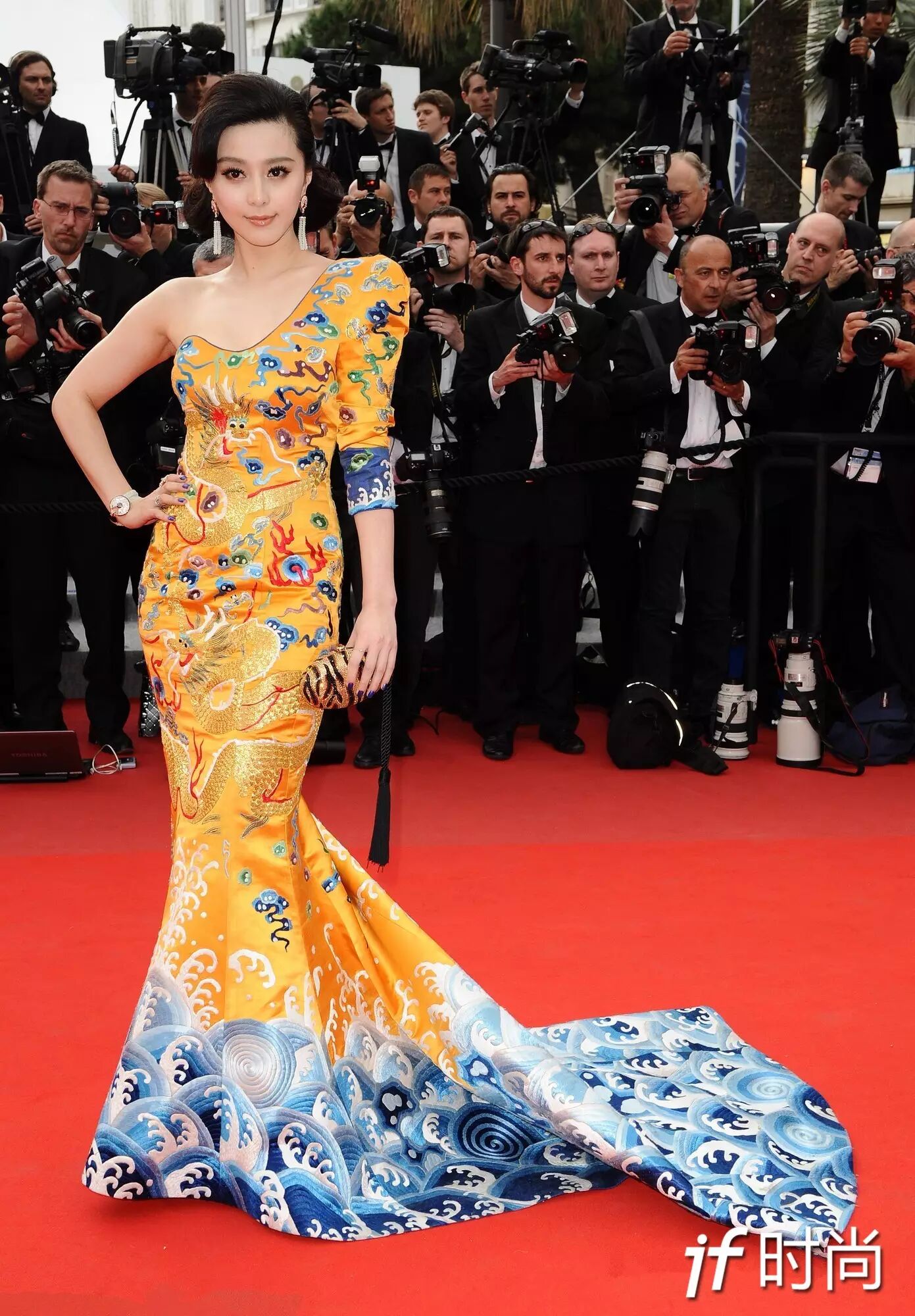 ▲范爷一袭明黄色龙袍出现在了开幕红毯,首次亮相便让全世界都知道了范冰冰这个名字。祥云、龙等中国传统图案栩栩如生,流畅的礼服线条凸显了好身材。