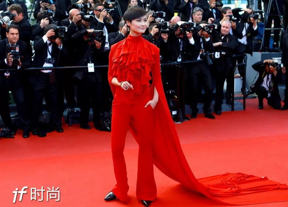 ▲2013年,在第66届戛纳国际电影节上,春春以巴黎欧莱雅代言人的身份首次踏上戛纳红毯,当天身穿Gareth Pugh的设计,猩红色真丝雪纺拖裙装,潇洒从容,更被国际媒体盛赞为:有如“春风吹戛纳”。