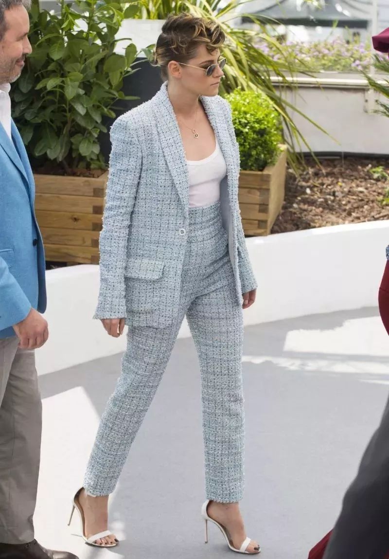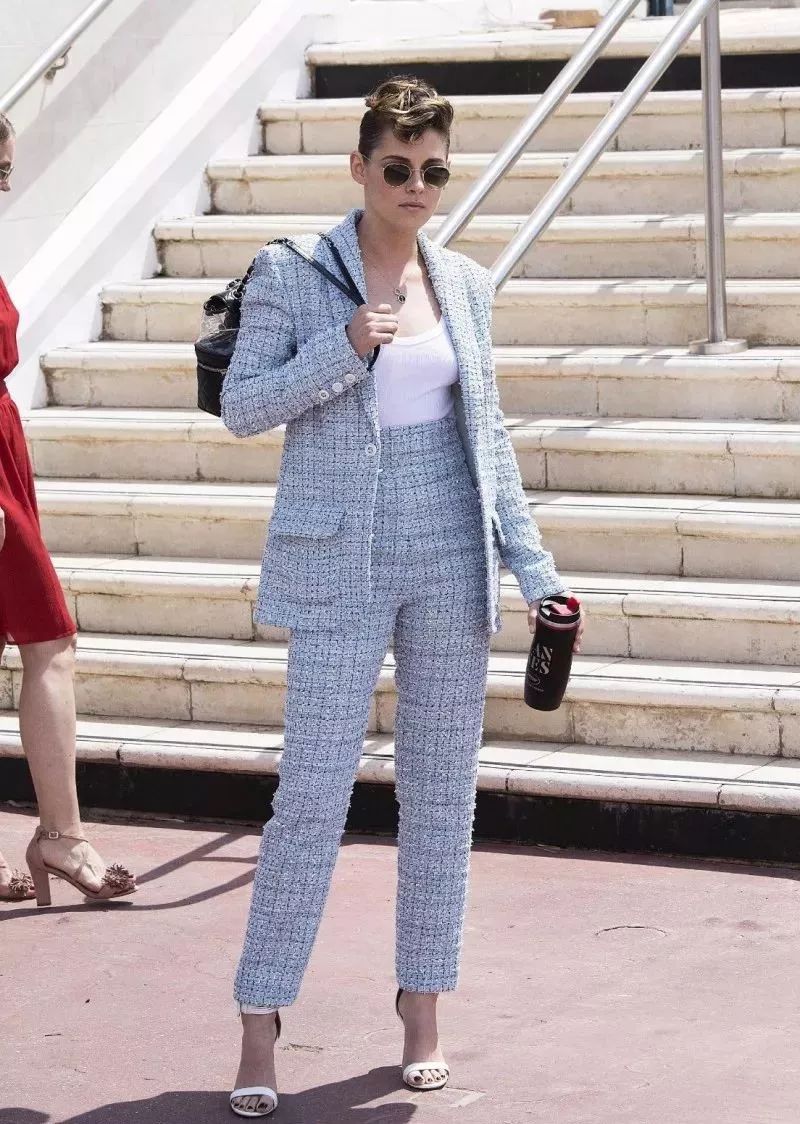相反她的另一套粉蓝的小香风套装倒是还蛮讨喜的,比红毯上好看多了。自信又攻气十足。