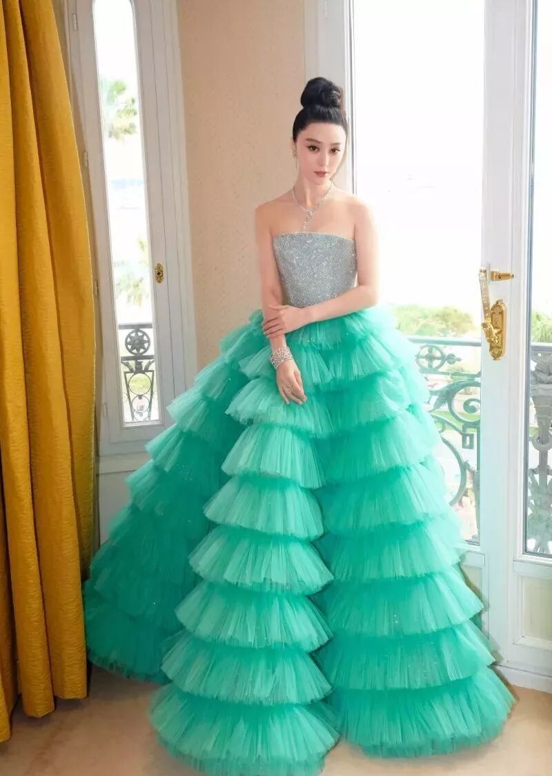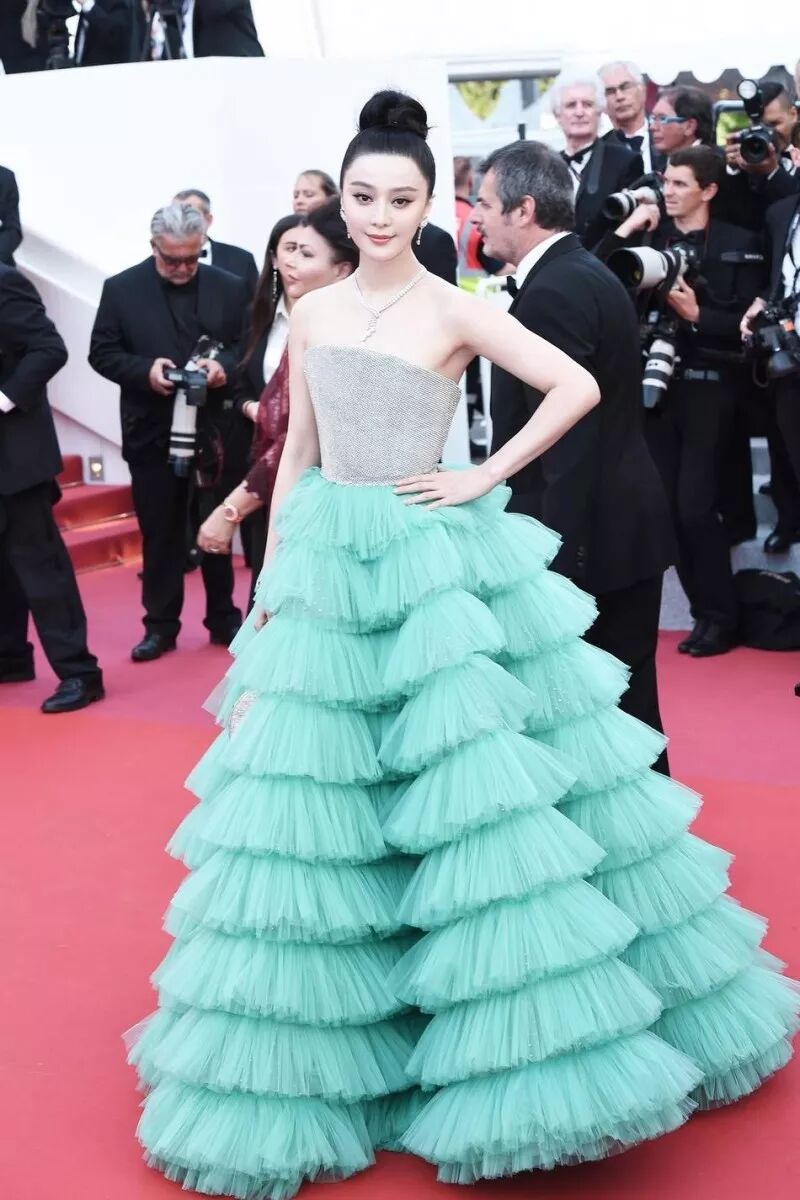 红毯女王范冰冰今年依旧亮相戛纳,这也是醒醒很期待的一位。她身穿Ali Karoui 2018春夏水绿色礼服亮相。