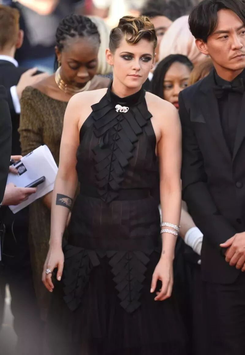暮光女美K上线!身穿chanel黑色礼服,搭配烟熏妆和朋克的发型,可以说很酷了!胸前的小狮子胸针,酷的很有态度。
