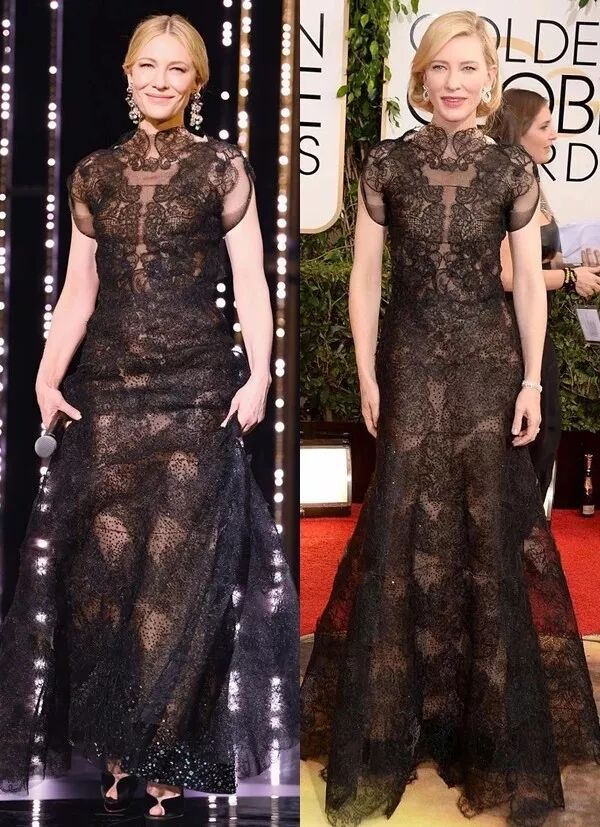 现身电影节开幕式晚宴的时候穿的是Ralph&Russo春夏高级定制裸色亮片裙。对比红毯上的水绿色裙子你更喜欢哪一个造型?