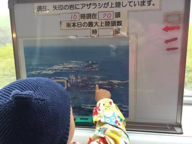 如图中告示牌里所示,襟裳岬是日本最大的海豹栖息地,这片人类划着小船都难以靠近的礁石险滩,正是400多头海豹的乐园。