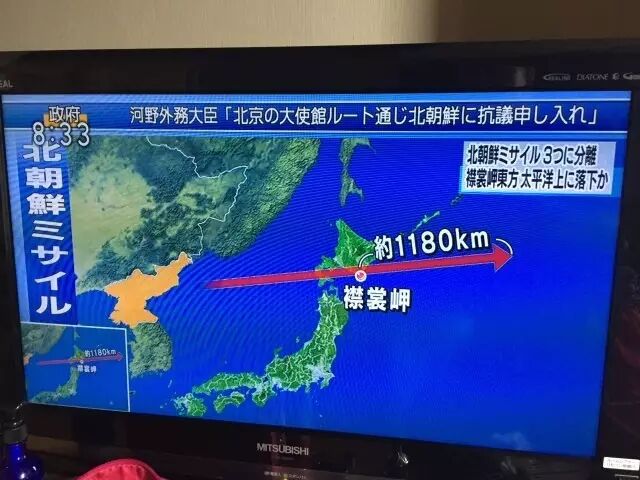 朝鲜8月29日发射的导弹就是划过了襟裳岬的上空掉落到了旁边的海里。所以在日本的电视上天天都能看到“襟裳岬”三个字。