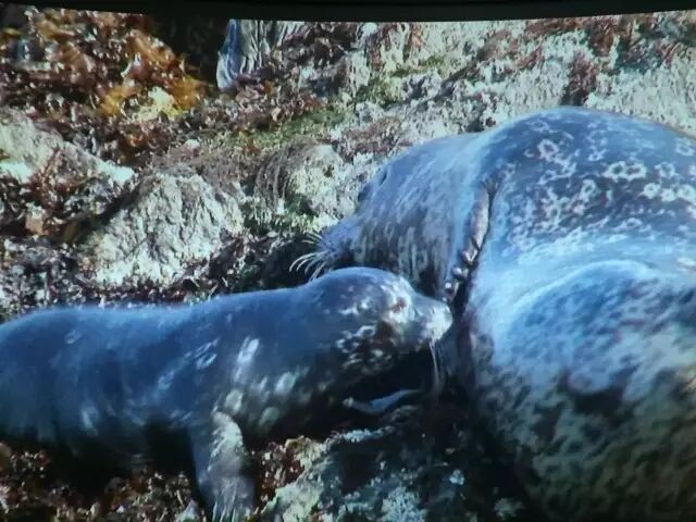 小白板上是工作人员观测后精心制作的海豹上陆位置图,告诉我们现在大概是有20头海豹在那里,这样方便游客们自己用望远镜根据指示轻易地找到海豹在哪里。虫妈看了这个指示牌之后,揣着200的单反头跑了出去。外面19m/s的大风大雨打得眼睛疼,根本看不清,只能凭着记忆朝着那个方向咔嚓了n张。谁知道拿回来一看,嘿!还真有!