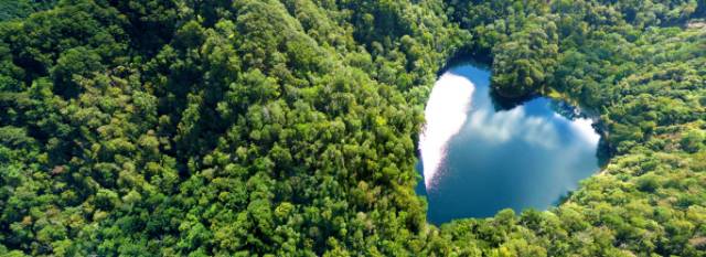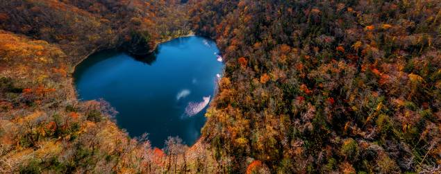 它以形状近似一颗桃心而出名。最漂亮的时候是秋天,那个时候可以乘坐日本自卫队的飞机到空中观赏美景。