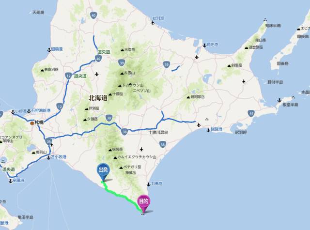再来个广域一点的图,看看这条线路在整个北海道所处的位置。