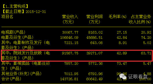 根据幸福蓝海的招股说明书来看,电影院线发行及放映成为该公司的收入大头,2015年这部分业务的收入达到9.15亿元,营业利润3.93亿元,约占幸福蓝海主营业务收入比例的47.27%;电视剧2015年营业收入3亿元,约占公司主营业务收入比例的20.92%。公司预计2016年1月至9月归属于母公司股东净利润6,650万元至6,950万元,较上年同期上升5.88%-10.66%。