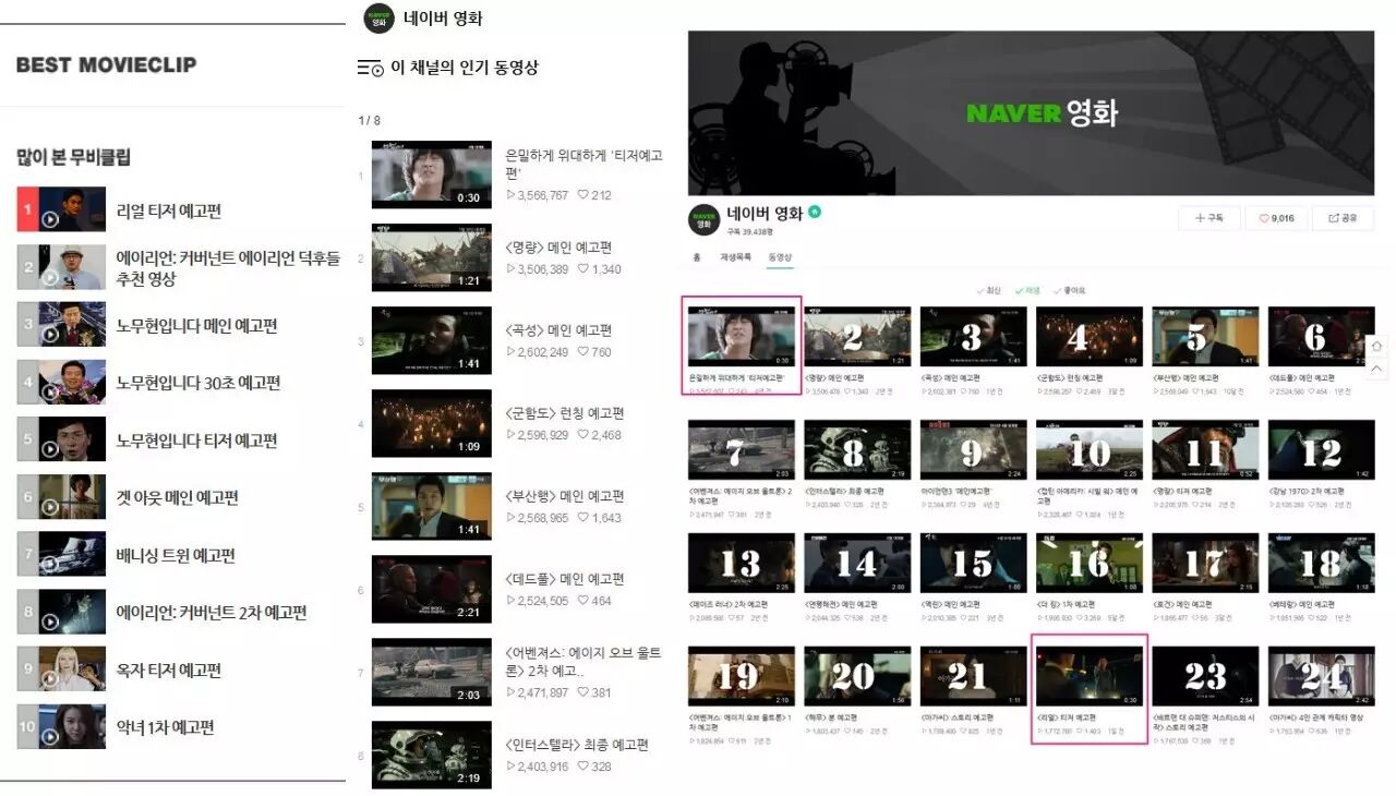目前《REAL》首波预告片以177万+的点击量位居Naver电影频道电影宣传视频点击量总榜第22位(见右图)