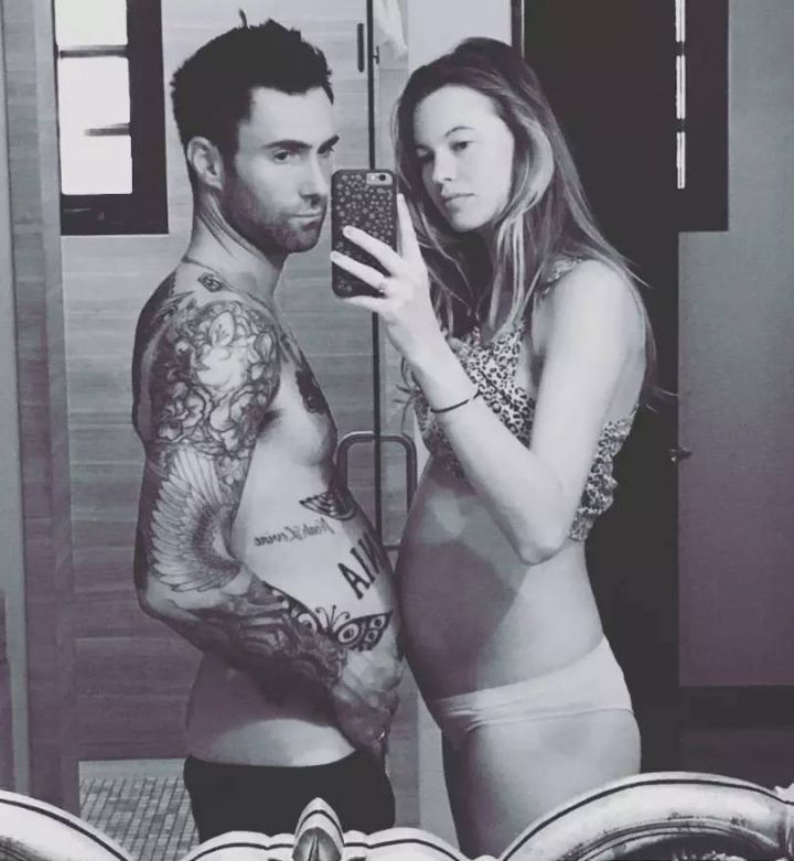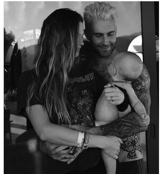 去年秋天,Maroon5突然宣布取消了演唱会,有人就猜测是小南瓜即将临盆,骚当陪老婆去了!果然,9月21日,他们的第一个女儿Dusty Rose Levine出生了!