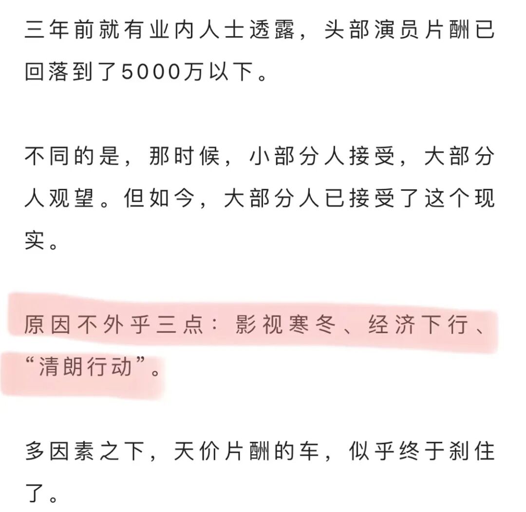 据业内人士透露,在疫情、经济、影视寒冬、限薪令、清朗行动等多重压力之下,以往不给天价片酬不出演的艺人们终于认清眼前的形势,纷纷调整自己的片酬,生怕给自己捅娄子断送整个演艺生涯。
