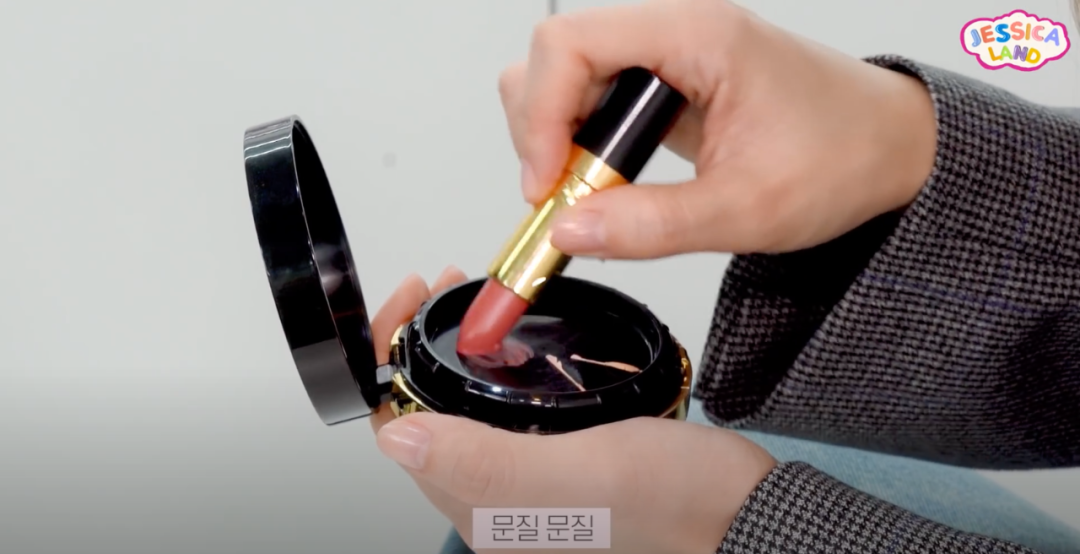视频一开始,Jessica就表示自己已经带妆很久了,需要补妆。