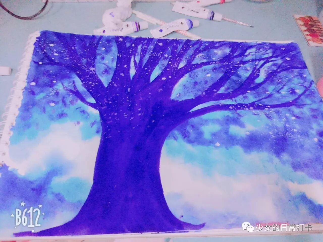 再等底色干一点画完树干树枝就可以了