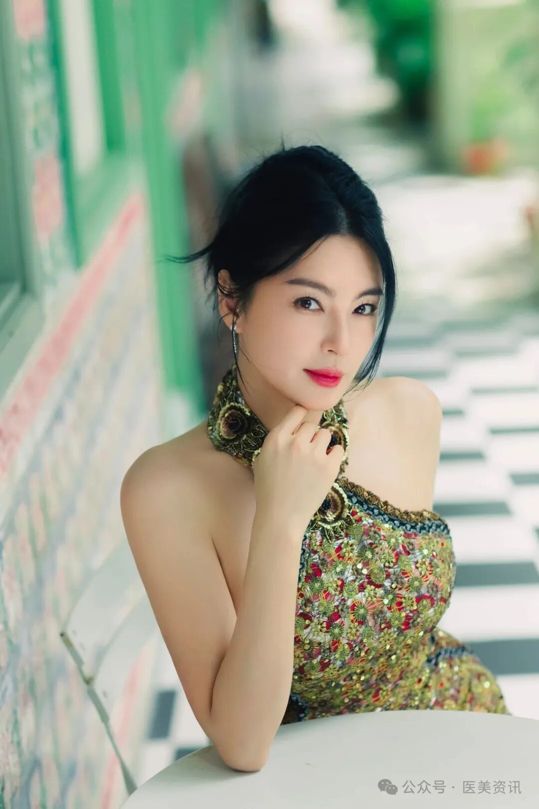 张雨绮一袭挂脖露肩旗袍,如同古典画卷中的仙子,优雅地步入了时尚的殿堂。