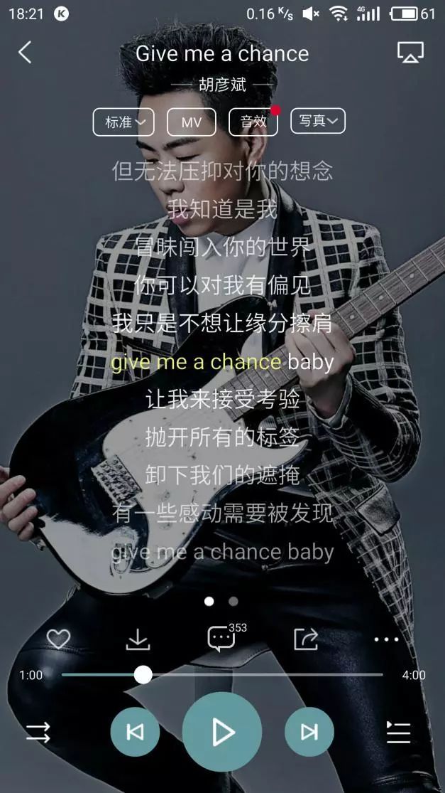 这种声浪在今天凌晨达到了顶峰。因为胡彦斌凌晨在酷狗发了新歌,歌名叫《Give me a chance》,翻译过来就是“给我一次机会”。