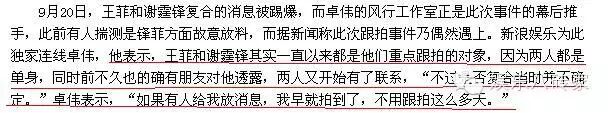 那个时候顶多谢霆锋开始追王菲,王菲还没答应,八字都还没一撇