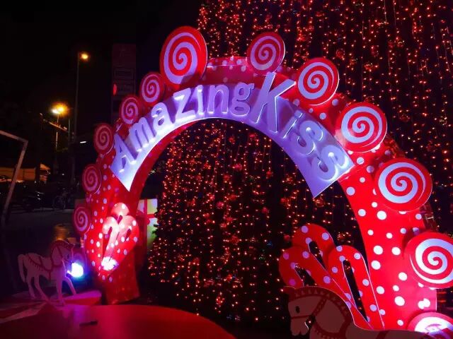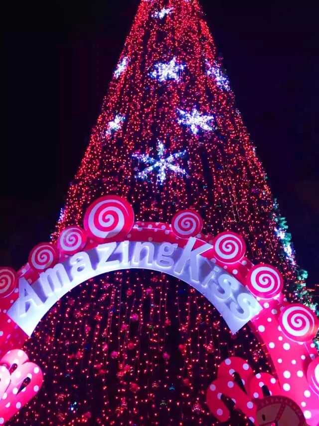 圣诞树的装饰灯经过特殊设计,当亲吻时,能构成一个安全的人体导电回路,点亮圣诞树上的装饰灯,完成这个唯美而浪漫的宣誓。